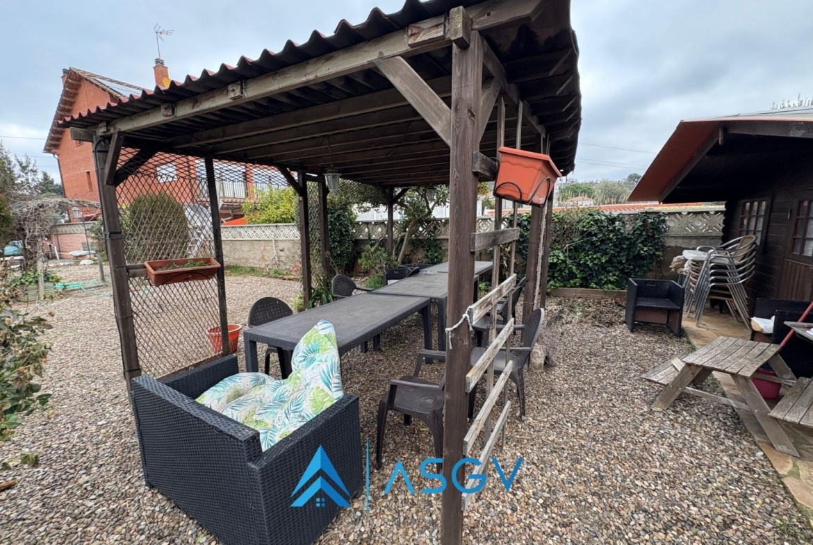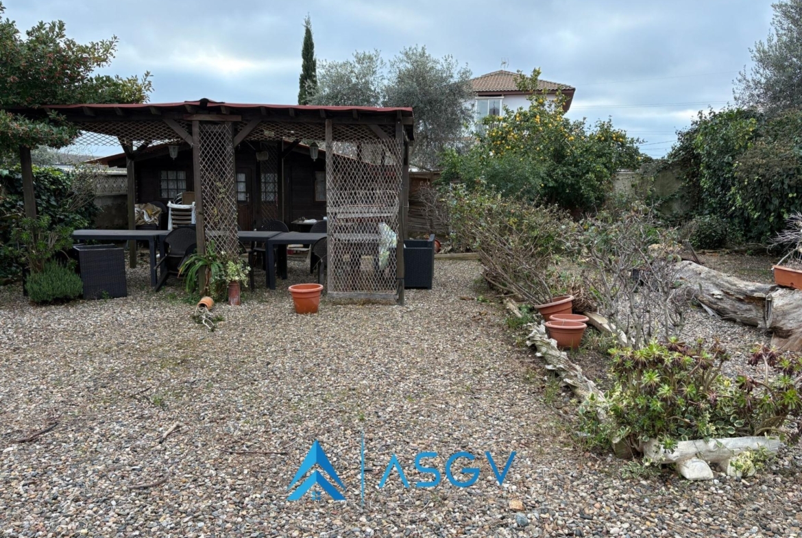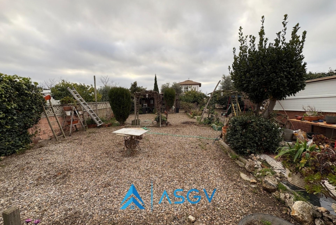 La parcela tiene una extensión generosa de 676 m² donde se pueden encontrar árboles frutales brindando sombra natural durante los calurosos días estivales; el espacio exterior también permite potenciales ampliaciones a su gusto personalizando aún más su vivienda perfecta.